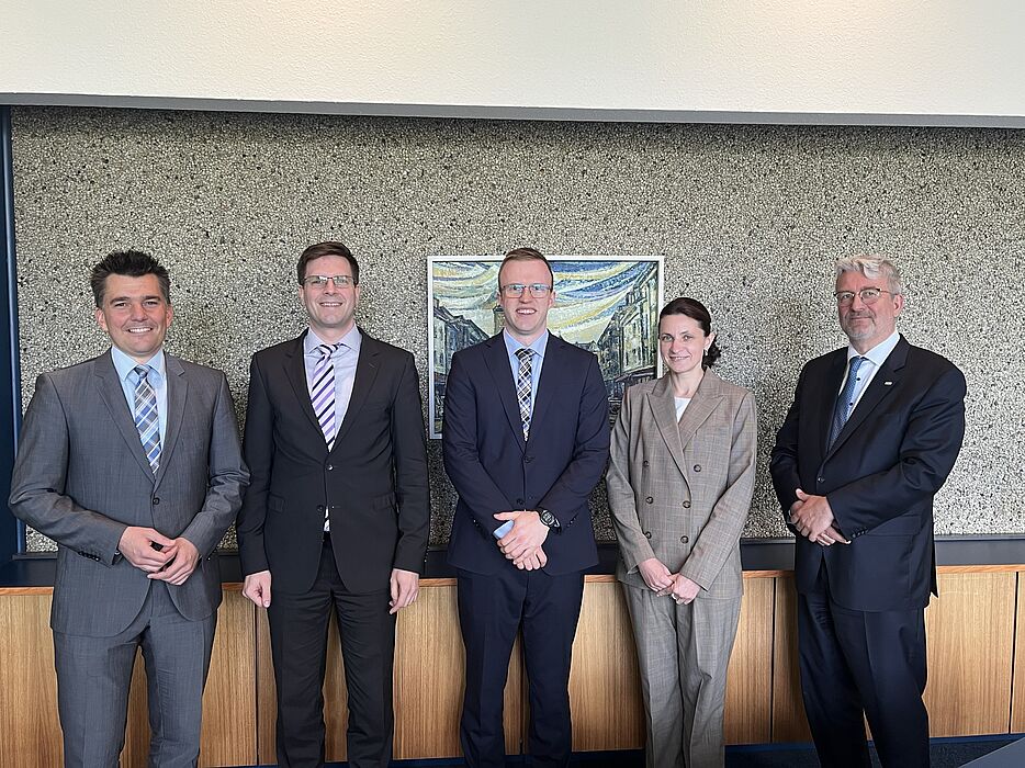 The doctoral committee, consisting of the reviewers Prof Dr Iryna Mozgova and Prof Dr Roland Lachmayer, as well as Prof Dr Alexander Schlüter (Chair) and Dr Jens Pottebaum, congratulated the new Dr Andreas Maximilian Schultz.