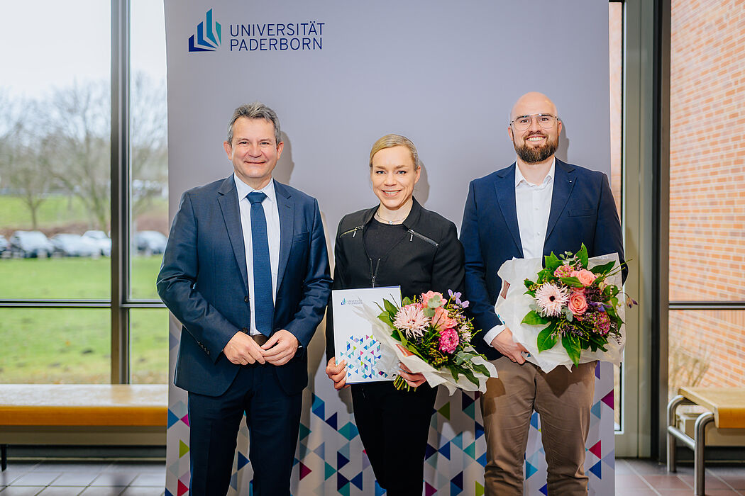 Der Forschungspreis der Universität Paderborn 2025 ging an Dr.-Ing. Sandra Gausemeier aus dem Bereich Maschinenbau sowie an Dr. Tim Lehmann vom Department Sport & Gesundheit. Dr.-Ing. Gausemeier ist Expertin für Fahrerassistenzsysteme in der Fachgruppe Regelungstechnik und Mechatronik am Heinz Nixdorf Institut. Gemeinsam mit Dr. Lehmann, wissenschaftlicher Mitarbeiter im Arbeitsbereich Trainings- und Neurowissenschaften, wurde sie für ihr interdisziplinäres Forschungsprojekt “Pedestrian Pre-Sense: Intuitiv antizipierende autonome Fahrzeuge für sichere Fußgänger*innen” ausgezeichnet.